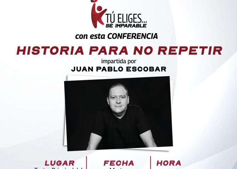 El conferencista es Juan Pablo Escobar, conocido durante un par de décadas como Juan Esteban Marroquín Santos, en el tiempo que tuvo que separar su verdadera identidad para tratar de desligarse de la historia de su padre, uno de los más buscados por la justicia.
