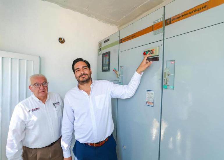 • Equipamiento de la Estación de Bombeo de Agua Potable, EBAP #5 con tres nuevas bombas verticales de 250 litros por segundo y 129 caballos de fuerza para garantizar la presión y continuidad del suministro. Esta mejora, con una inversión de 2.8 mdp, beneficiará a más de 70 mil usuarios del Sector Centro.