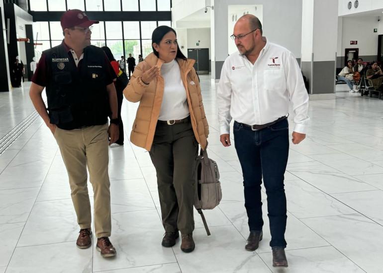 La secretaria de Bienestar federal, Ariadna Montiel Reyes, arribó esta mañana a Reynosa y fue recibida por el secretario general de Gobierno, Héctor Joel Villegas González.