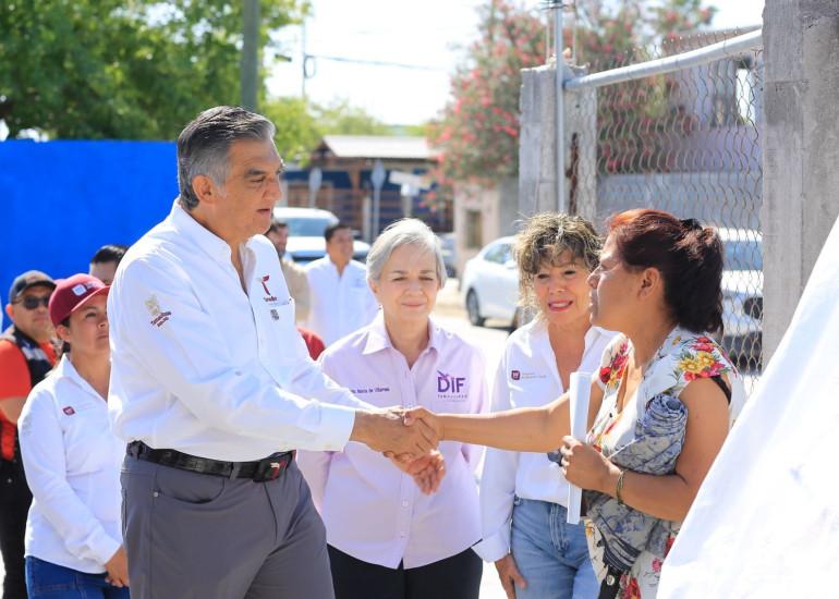 Al llegar a la casa de doña Chelo, una reconocida líder de esta colonia por más de 30 años, Américo Villarreal fue recibido con un "gracias por todo, es usted un gobernador excelente".