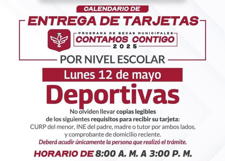 Este lunes 12 de mayo, el Presidente Municipal Carlos Peña Ortiz entregará las Becas Deportivas “Contamos Contigo” 2025 en el Polideportivo Reynosa, en un horario de 8:00 A.M. a 3:00 P.M.