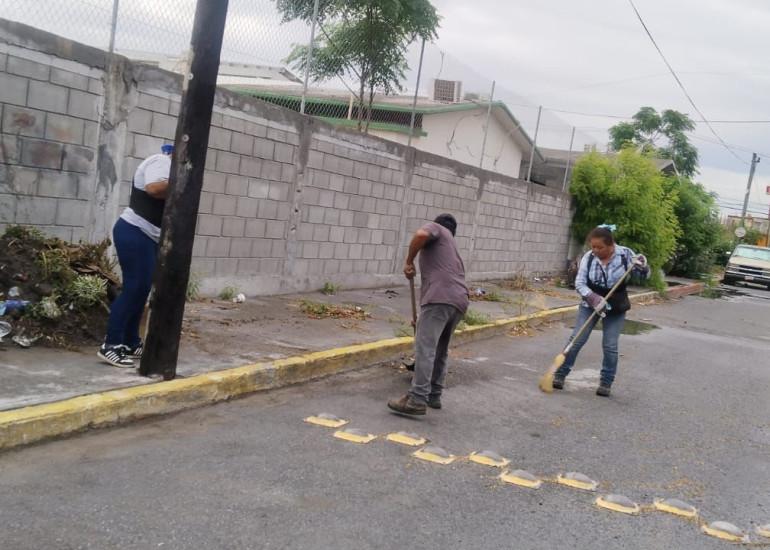 El Presidente Municipal Carlos Peña Ortiz respondió a la petición de la sociedad de padres de familia y la Dirección de la escuela primaria Conrado Cantú, ubicada en la colonia Lomas de Valle Alto, proporcionando apoyo logístico para el saneamiento del plantel.