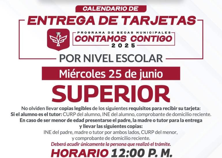El Presidente Municipal Carlos Peña Ortiz hará entrega de las Tarjetas del Programa de Becas Más Grande en la Historia de Reynosa, para beneficiarios de Educación Superior, este miércoles 25 de junio en el Polideportivo a partir de las 12:00 del medio día.