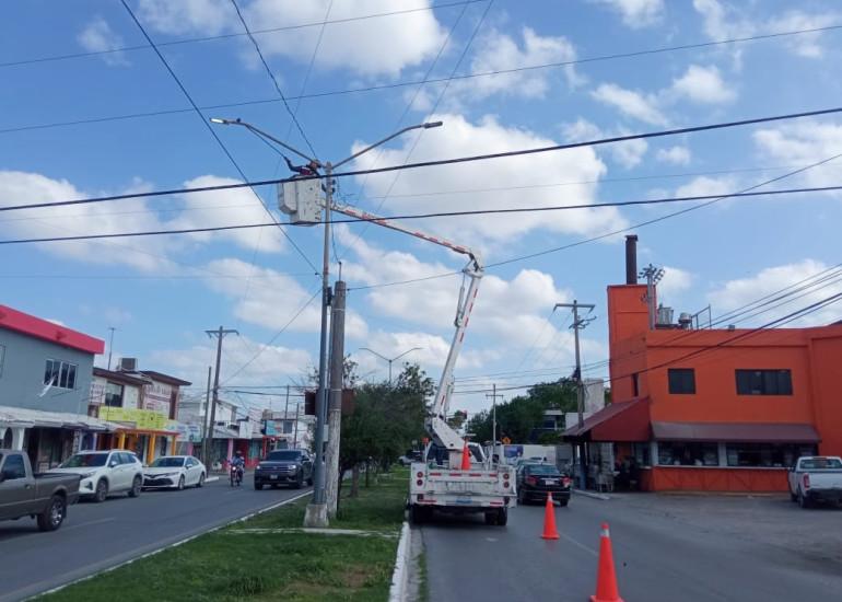 Entre las acciones realizadas se incluyen la instalación de balastras y focos, tendido de cable, y la reparación de lámparas, acciones que fueron realizadas en el bulevar Las Fuentes, carretera a Río Bravo, bulevar Hidalgo y colonias como Hacienda del Sol y SNTE.