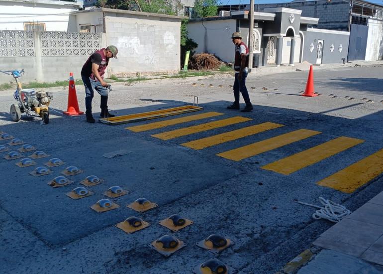 Resguardan con cruces "cebra" a peatones en Reynosa