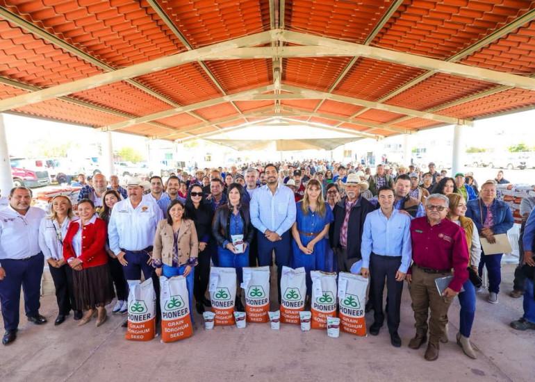 Al presidir la entrega de 26 toneladas y 820 kilos de semilla de sorgo a 185 productores del campo reynosense en más de 35 ejidos, mediante el programa municipal "Trato Justo", el Alcalde Carlos Peña Ortiz los invitó a analizar el cambio de cultivos: 'tenemos que empezar a diversificar para poder mejorar rendimiento e ingreso; el sorgo dio treinta, cuarenta años pero se ha batallado muchísimo, hay que empezar a explorar la soya, el ajonjolí".