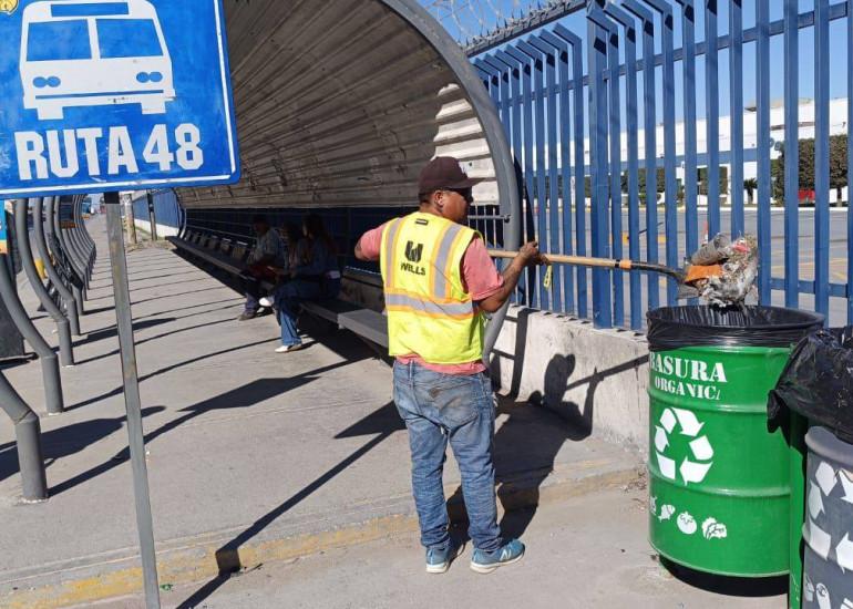 Durante el recorrido, se visitaron los parabuses: puente Panasonic, puente Húngaro, Periférico, bulevar Hidalgo, y Juárez, donde se llevó a cabo el levantamiento de basura y se verificó el estado de los espacios públicos.