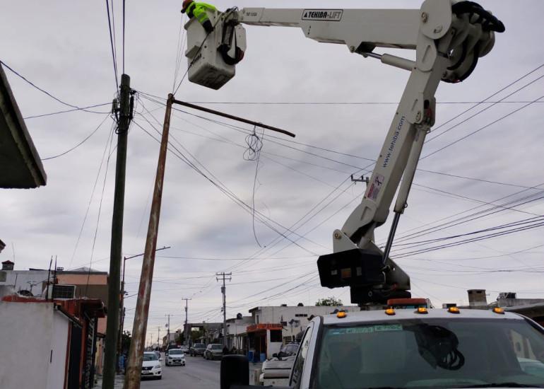 Recupera Gobierno de Reynosa postes del alumbrado público derribados por ventarrón