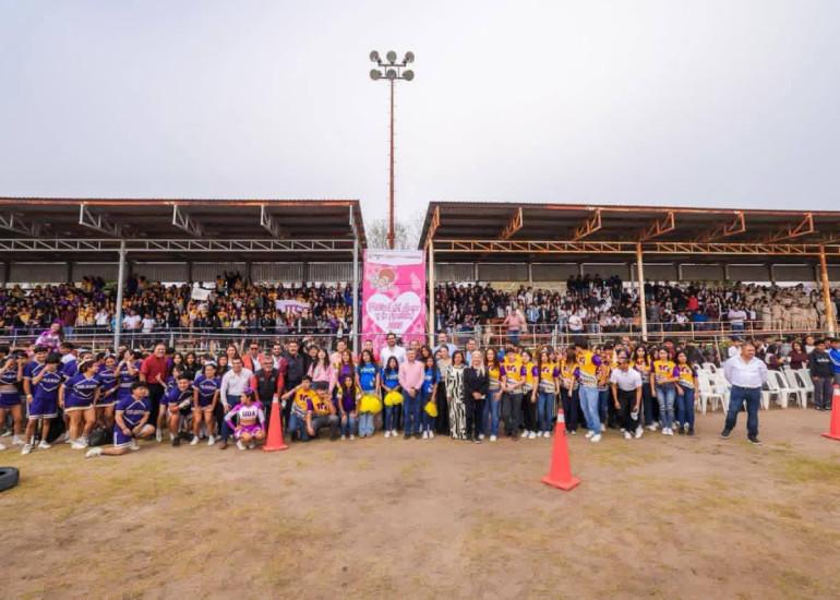 El Alcalde Carlos Peña Ortiz y su esposa la Presidenta del Voluntariado DIF-Reynosa, Alejandra Yelitza Garza, inauguraron el Festival del Amor y la Amistad 2026 com mas de 2 Mil estudiantes de Preparatoria y Universidad, en el campo de fútbol del Gimnasio de la UAT, donde destacaron la importancia de impulsar la sana convivencia y los valores entre los jóvenes.