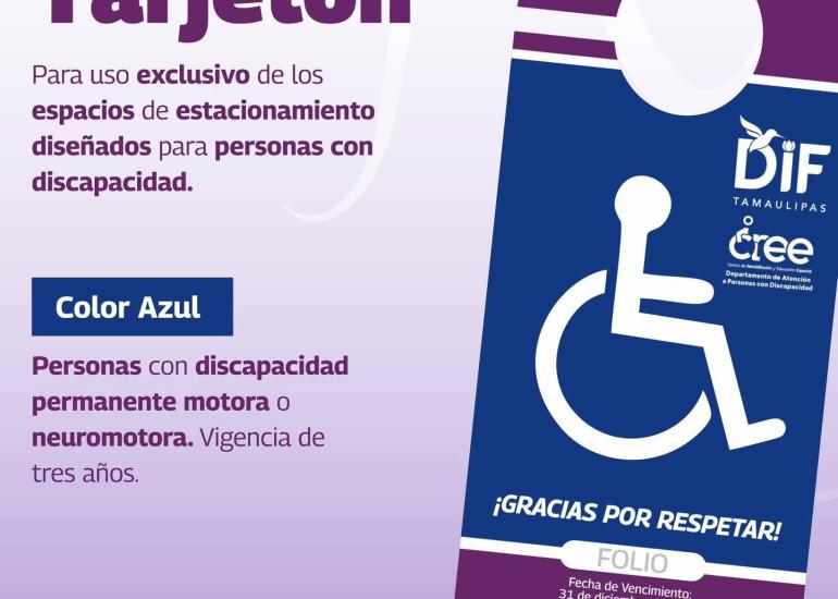 El Sistema DIF Reynosa que preside Carlos Luis Peña Garza, ofrece el trámite del tarjetón de discapacidad, el cual permite identificar a los vehículos que trasladan a personas con discapacidad y facilita el uso adecuado de los cajones especiales destinados para su movilidad.