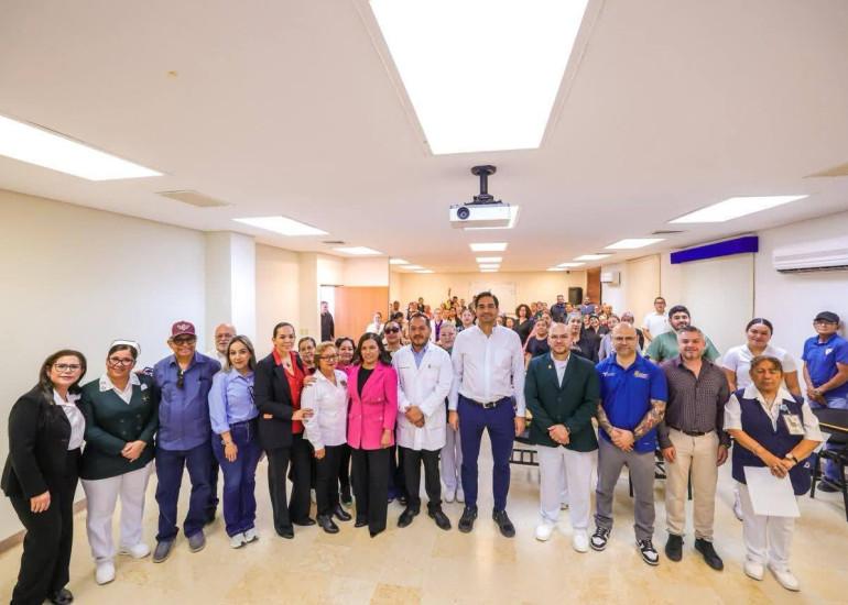 El Director del Hospital Materno Infantil, Eduardo López Torres, junto con el personal médico y administrativo, dio una cálida bienvenida al Alcalde de Reynosa en su visita para llevar los beneficios del programa municipal "Subsidio del Agua".