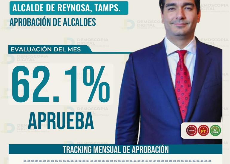 En un nuevo resultado de la encuesta de Demoscopia Digital, el alcalde de Reynosa, Carlos Peña Ortiz, alcanzó 62.1% de aprobación ciudadana, consolidando una evaluación positiva hacia su gestión.