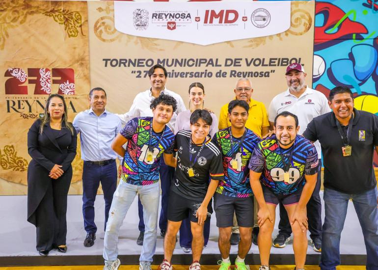 El Torneo Municipal de Voleibol número 143, titulado "277 Aniversario de la Fundación de Reynosa" fue inaugurado por el Alcalde Carlos Peña Ortiz, acompañado por su esposa la Presidenta del Voluntariado DIF, Alejandra Yelitza Garza, en el Polideportivo, este sábado 7 de marzo en que también entregaron las medallas que premian el torneo anterior.