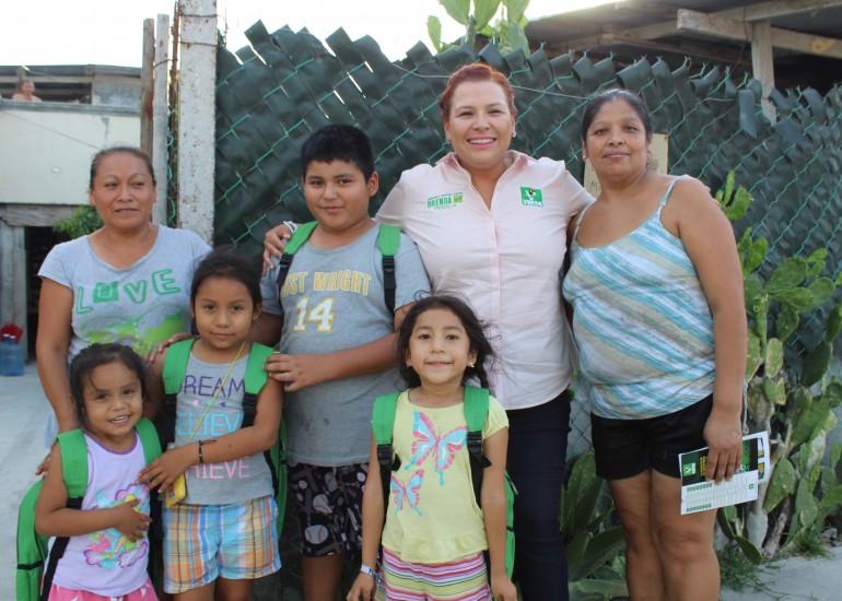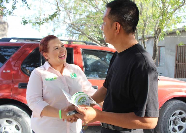Cd. Reynosa, Tamaulipas.-La Candidata del Partido Verde a la Diputación Federal, por el Segundo Distrito, Brenda Kú Martínez, fue recibida con gran entusiasmo, en la colonia Villas Del Roble, donde mostraron el interés por conocer más sobre la abanderada.