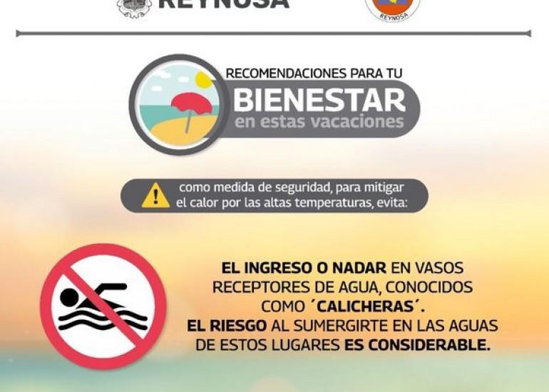 Con la llegada de la temporada de vacaciones y las altas temperatura que se pronostican para estos días, la Coordinación de Protección Civil y Bomberos en conjunto con el Republicano Ayuntamiento, exhorta a la población no ingresar a los vasos receptores de agua conocidos como calicheras.