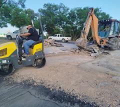 Reparación de baches en retorno de colonia La Joya mejora vialidad en la zona