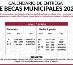 Viernes 8 de julio, Becas Municipales para nivel Medio Superior y Superior