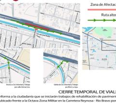 Cierre de puente elevado en carretera Reynosa-Río Bravo frente al Cuartel Militar*