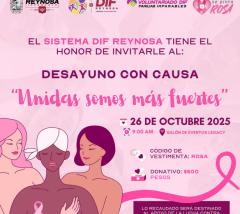Invita DIF-Reynosa y Voluntariado al Desayuno con Causa “Unidas Somos Más Fuertes” en apoyo a la lucha contra el cáncer de mama