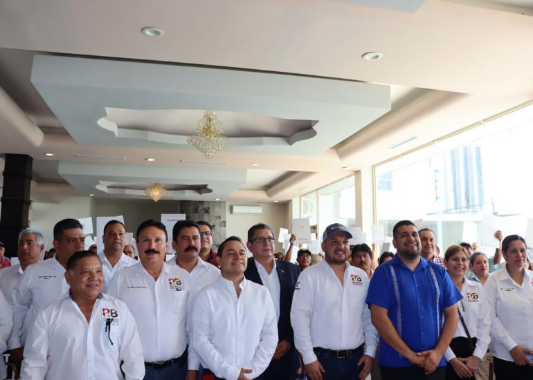 En la ceremonia se entregó de manera simbólica escrituras a familias de las colonias Independencia, Manuel Ramírez, Graciano Sánchez, Paraíso Norte, Nuevo León, Del Carmen, Niños Héroes, 1o. de Mayo, Miguel Hidalgo, Agapito Barrera, Cuauhtémoc, Conalep, entre otras.