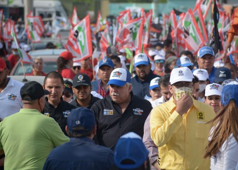 Durante su mensaje, Truko fue claro y directo al señalar a quienes no han tenido la capacidad de dar atención ni siquiera a los servicios públicos básicos de la localidad; “Es el primer municipio que yo veo que los baches los andan tapando con tierra, eso es penoso, es vergonzoso, pero para que se den cuenta que no es lo mismo tenerlas que mantenerlas”.Como candidato de la coalición recalcó que para trabajar y servirle al pueblo hay que tener corazón y espíritu, espíritu de servir al prójimo, además dijo, “siempre he sido una persona seria, de trabajo, honrada y honesta, que me gusta escuchar, que sé escuchar, que sé acordar y que sé cumplir y que no los voy a defraudar”.