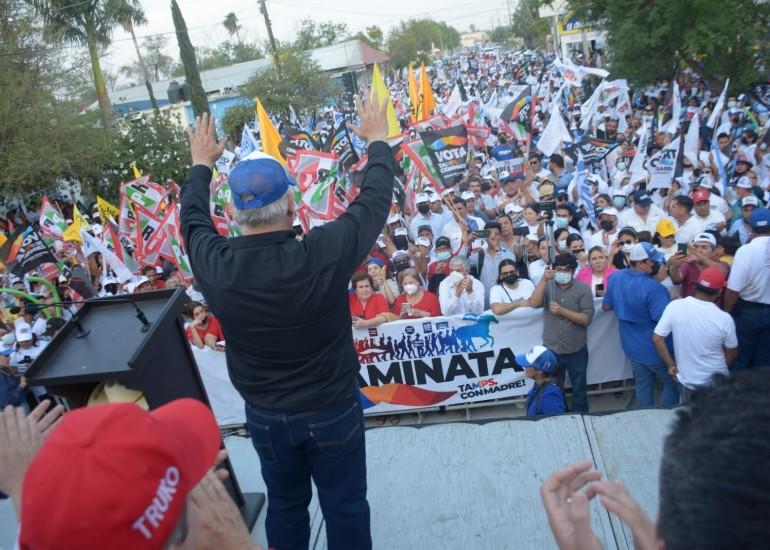 César El Truko Verástegui mostró no sólo músculo si no unidad pura, al reforzar la alianza Va x Tamaulipas más allá de las tres fuerzas principales, convocando a todas las figuras de Río Bravo que saben trabajar por y para la gente, con la energía y el calor de la gente río bravense.