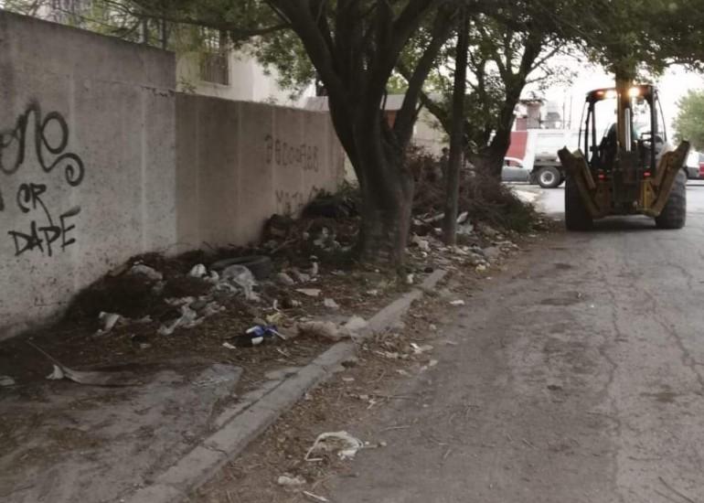 Ahora fue en la calle San Luis Potosí entre Chiapas y Sinaloa en el fraccionamiento Río Bravo, donde se retiro basura y ramas secas que caen de los árboles a consecuencia de los fuertes vientos que se han presentando.