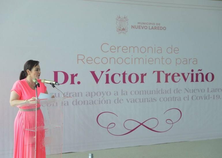 El gobierno municipal entregó un reconocimiento especial al doctor Víctor Treviño en su culminación frente al Departamento de Salud de Laredo y por su colaboración con la alcaldesa Carmen Lilia Canturosas Villarreal para la aplicación de alrededor de 100 mil vacunas contra el Covid 19 a neolaredenses.