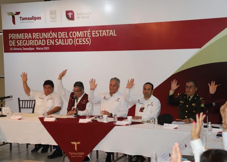 En la primera reunión del Comité Estatal de Seguridad en Salud, se contó con la presencia del subsecretario de Salud Pública, José Luis Garza Ruiz; Eduardo Martínez Bermea, subsecretario de Atención Médica; Gabriel de la Garza Garza, subsecretario de Planeación y Calidad; Alberto Moctezuma Castillo, comisionado estatal para la Protección Contra Riesgos Sanitarios (COEPRIS); el representante de la 48/a. Zona Militar, así como los representantes del IMSS, ISSSTE y Cruz Roja entre otras dependencias.