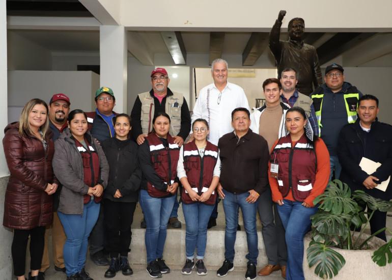 Acompañado del director del Centro Regulador de Urgencias Médicas (CRUM), Carlos Arturo González Castro y la directora del Primer Nivel de Atención, Brenda Plata Flores, el secretario de Salud, reconoció las labores de los 15 trabajadores que se desplazaron a la zona afectada por este fenómeno natural.