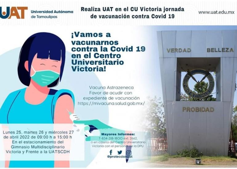 Como parte del compromiso que la Universidad Autónoma de Tamaulipas (UAT) mantiene con la protección de la salud de su comunidad, este 25 de abril dio inicio en el Centro Universitario Victoria la Jornada intensiva de vacunación contra la Covid-19, dirigida a personal docente, administrativo y alumnos de esta institución.
