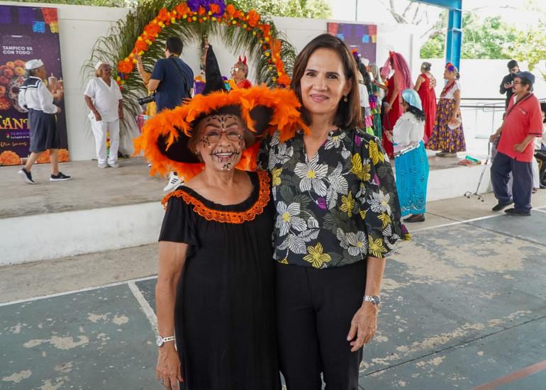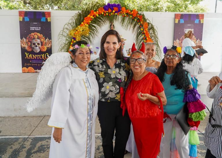 La Presidenta del Sistema DIF Tampico, Sra. Luz Adriana Villarreal Anaya, encabezó el evento "Xantolo 2024" en la Casa Club de la colonia Solidaridad, Voluntad y Trabajo, donde se instaló un monumental altar, y los adultos mayores ejecutaron bailes alusivos a la fecha.