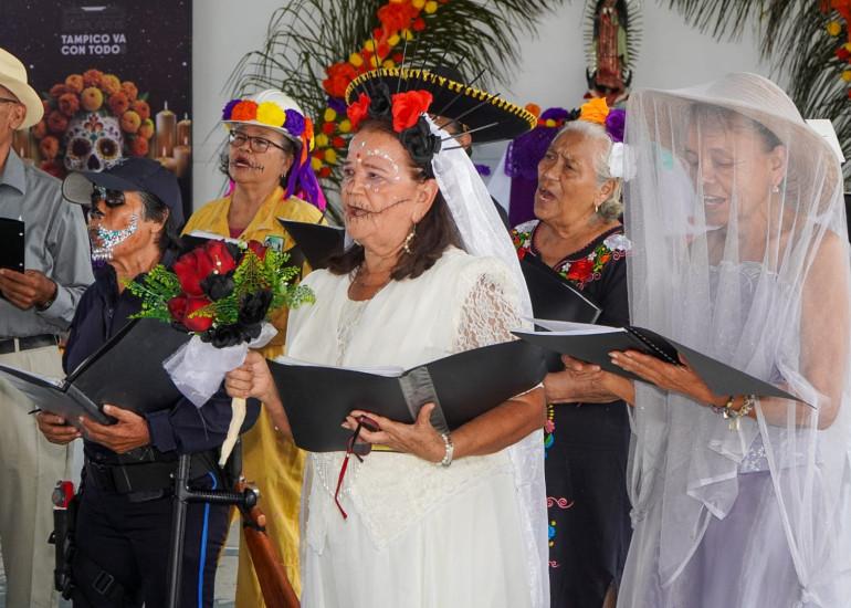 La festividad contó con la participación del coro del Adulto Activo con interpretaciones alusivas a la fecha como, "La Llorona", "Bruja" y "Recuérdame"; mientras que la alegría se reflejó con el baile "Sones de Xantolo".