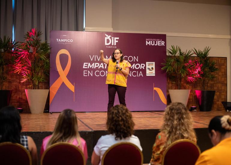En su mensaje Mónica Villarreal agradeció a la Presidenta del Sistema DIF Tampico, Luz Adriana Villarreal y a la Directora del Instituto municipal de la Mujer, Amalia Gabriela Ávalos, por sumar esfuerzos y acercar a las mujeres información esencial que ayuda a construir una sociedad libre de violencia.