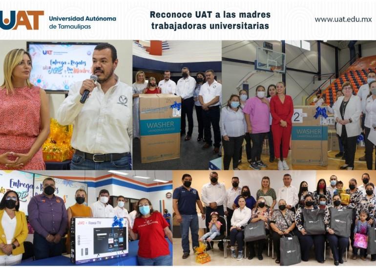 Con motivo de la celebración del Día de las Madres, el C. P. Guillermo Mendoza Cavazos, Rector de laUniversidad Autónoma de Tamaulipas (UAT), hizo un reconocimiento a las madres trabajadoras universitarias por la entrega y compromiso en sus hogares y en su extraordinario desempeño laboral.
