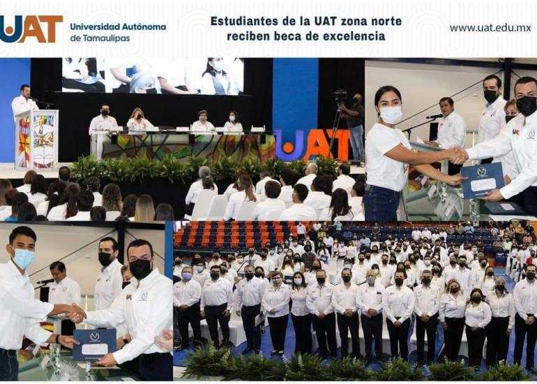 En un significativo acto académico celebrado en el Gimnasio Multidisciplinario de Reynosa, el C. P. Guillermo Mendoza Cavazos, Rector de la Universidad Autónoma de Tamaulipas (UAT), presidió la ceremonia de entrega de becas de excelencia a sus estudiantes más sobresalientes de los planteles universitarios de Reynosa, Río Bravo, Valle Hermoso y Matamoros.Fueron 251 estudiantes de la UAT Zona Norte quienes recibieron los estímulos económicos que la máxima casa de estudios de Tamaulipas les otorga en reconocimiento a su desempeño académico sobresaliente, y que corresponde al ciclo escolar 2021-3.