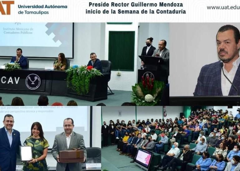 En su mensaje, el Rector Guillermo Mendoza dijo que estas actividades refuerzan los vínculos con organismos y asociaciones, importantes para la inserción de los egresados en el mercado laboral.Subrayó que la carrera de Contador Público exige capacitación constante debido a diferentes factores sociales y económicos, y por ello la UAT busca dotar a sus estudiantes de herramientas que les permitan competir con éxito en el mercado laboral.