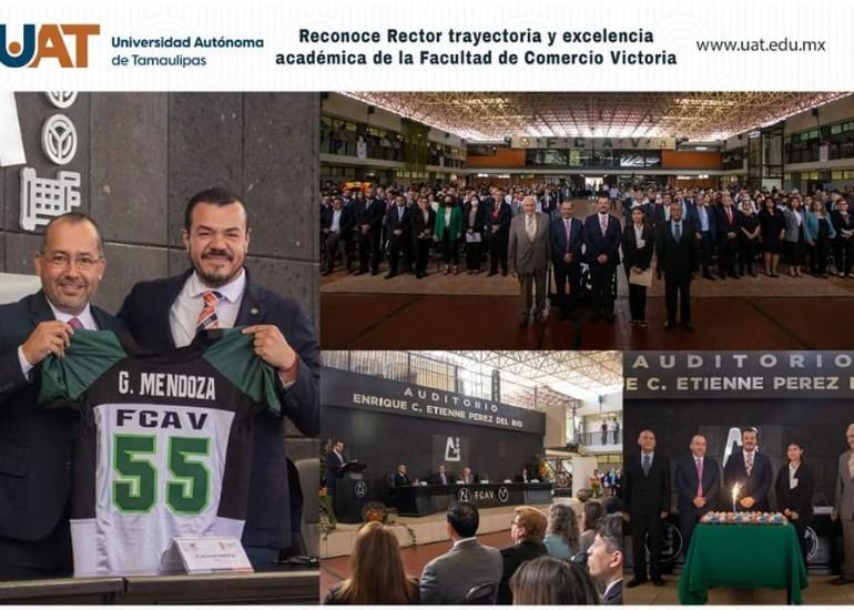 Victoria La Facultad de Comercio y Administración Victoria (FCAV) llevó a cabo la ceremonia conmemorativa del quincuagésimo quinto aniversario de su fundación, acto en que el C. P. Guillermo Mendoza Cavazos, Rector de la Universidad Autónoma de Tamaulipas (UAT), reconoció la trayectoria y excelencia académica de ese plantel universitario.