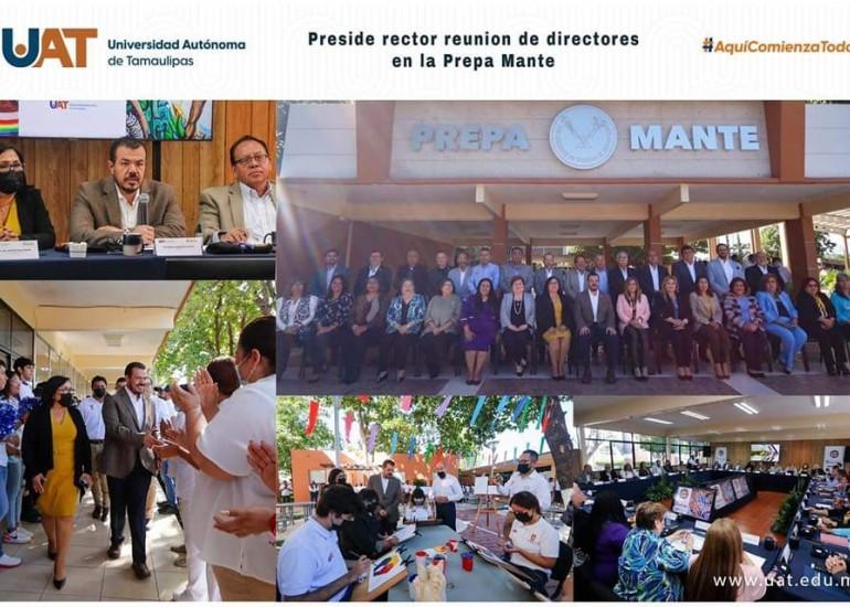 El C. P. Guillermo Mendoza Cavazos, rector de la Universidad Autónoma de Tamaulipas (UAT), presidió la onceava reunión del Colegio de Directores de la máxima casa de estudios de la entidad en la Escuela Preparatoria Mante.