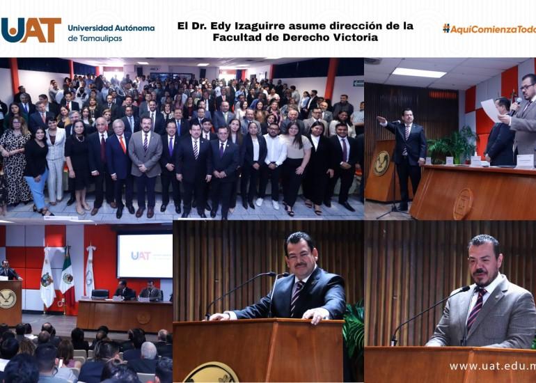El C. P. Guillermo Mendoza Cavazos, rector de la Universidad Autónoma de Tamaulipas (UAT), le tomó la protesta al Dr. Edy Izaguirre Treviño como director de la Facultad de Derecho y Ciencias Sociales Victoria (FDCSV) para el período 2022-2026.