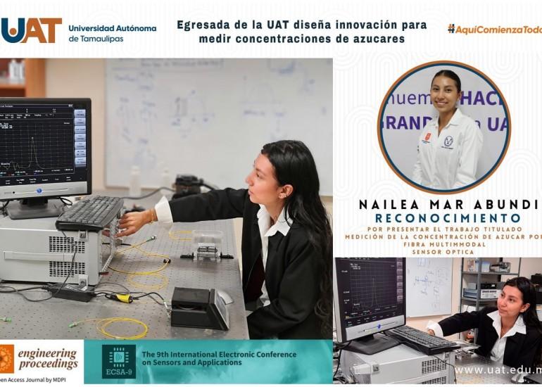 La joven Nailea Mar Abundis, egresada de Ingeniería en Electrónica de la Universidad Autónoma de Tamaulipas (UAT), diseñó un sensor que permite mejorar la detección de los niveles de azúcares en alimentos y bebidas, el cual fue presentado con éxito en un evento internacional y ha sido publicado en una prestigiada red de ediciones científicas con base en Suiza.