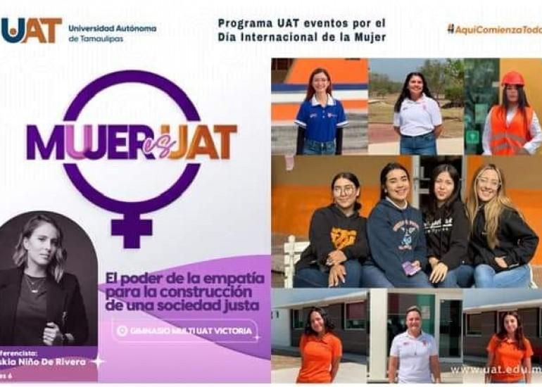El martes 7 de marzo, la UAT desarrollará en sus dependencias de Ciudad Victoria diferentes conferencias sobre inclusión, participación y empoderamiento de la mujer; en el Campus Tampico se disertará una charla en torno a esta celebración, se efectuará el concierto “MujerEs Arte” y se hará una presentación sobre los aportes de las mexicanas al arte; y en la UAM Mante se impartirá una charla sobre violencia en el noviazgo.