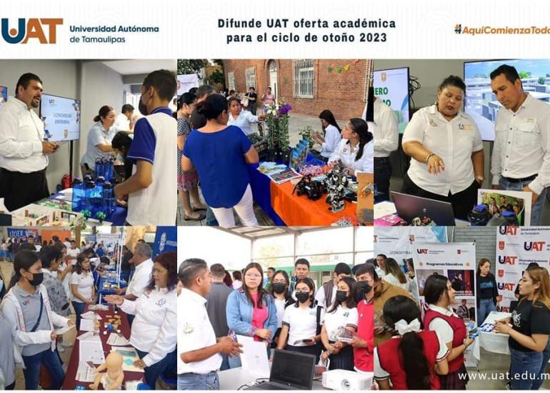 Mediante la participación de las distintas facultades y unidades académicas en diferentes ferias vocacionales, la UAT difunde entre la comunidad estudiantil de nivel medio superior la oferta de programas educativos que impartirá en el próximo ciclo escolar de otoño 2023 (agosto-diciembre).
