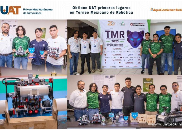 Alumnos de la Universidad Autónoma de Tamaulipas (UAT) tuvieron una destacada participación en el XIV Torneo Mexicano de Robótica 2023 realizado en Xalapa, Veracruz, donde obtuvieron primer y tercer lugar en dos de las categorías del certamen, una de las cuales otorga el pase al torneo latinoamericano a celebrarse en Brasil.