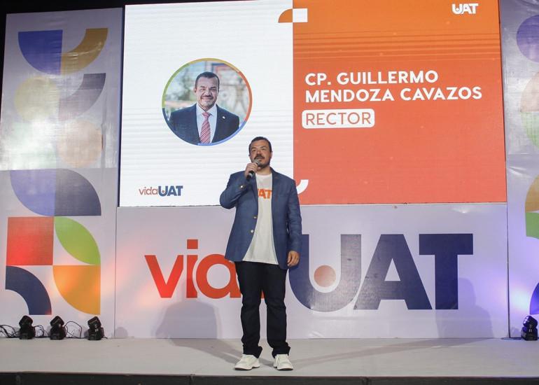 El C. P. Guillermo Mendoza Cavazos, rector de la Universidad Autónoma de Tamaulipas (UAT), encabezó en el Campus Tampico el cierre de las jornadas "Vida UAT", evento que tuvo como objetivo principal dar la bienvenida a poco más de ocho mil quinientos estudiantes que en este ciclo escolar ingresaron a las distintas sedes de la máxima casa de estudios en todo el estado.