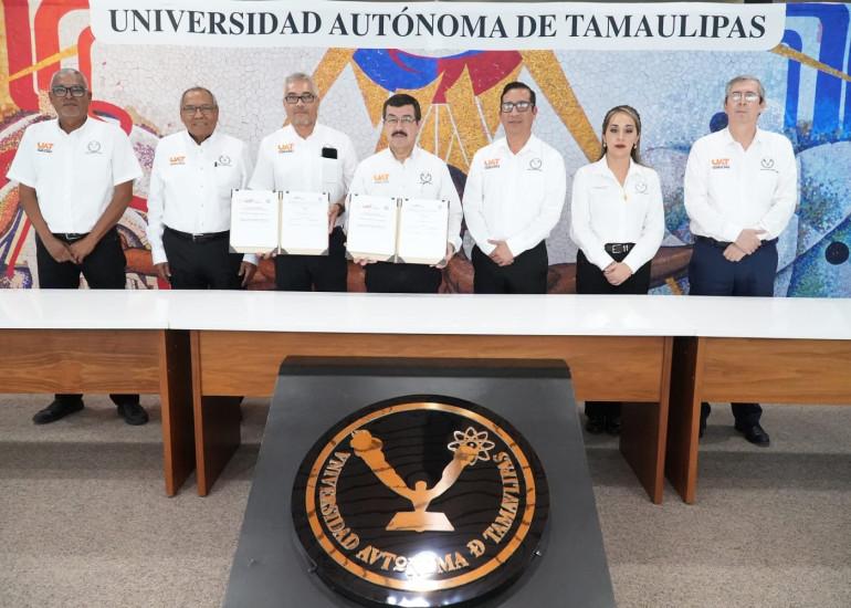 El rector de la Universidad Autónoma de Tamaulipas, Dámaso Anaya Alvarado, presidió la firma del contrato colectivo laboral con el Sindicato Único de Trabajadores de la UAT (SUTUAT), donde enfatizó el compromiso de la institución por seguir mejorando las condiciones laborales del personal sindicalizado de esta casa de estudios.