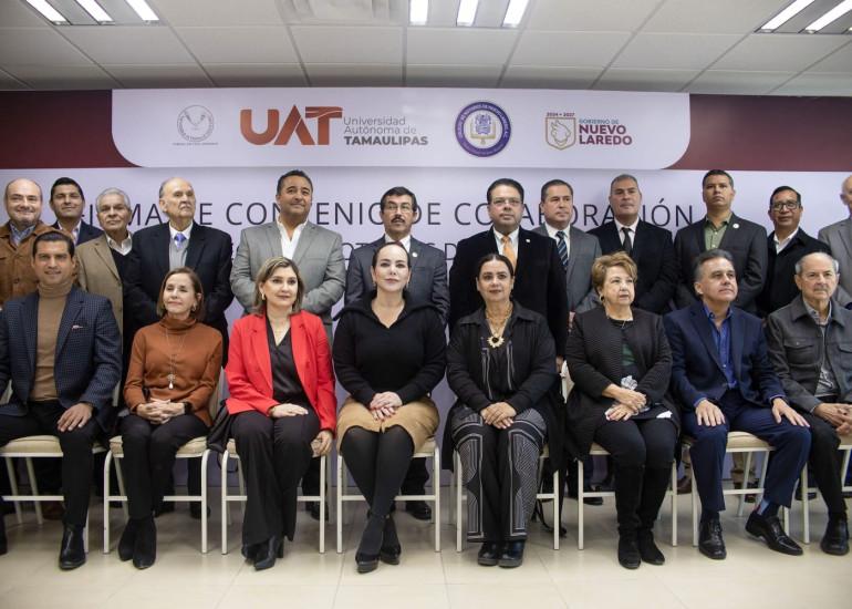 El acuerdo fue firmado por el rector de la UAT, Dámaso Anaya Alvarado, y por el presidente del Colegio de Notarios de Nuevo Laredo, Óscar Mario Hinojosa Ramírez; teniendo como testigos de honor a la presidenta municipal, Carmen Lilia Canturosas Villarreal, y al director de la facultad, René Adrián Salinas Salinas.