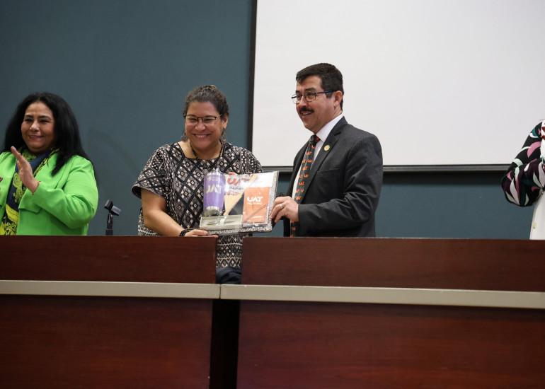 Lenia Batres fue recibida en el Campus Tampico por el rector de la UAT, Dámaso Anaya Alvarado, quien destacó la importancia que representa para la Universidad participar, desde la academia, en el análisis y discusión de temas fundamentales para el país.