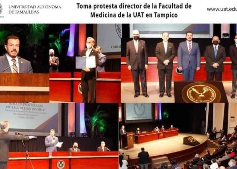 El C. P. Guillermo Mendoza Cavazos, Rector de la Universidad Autónoma de Tamaulipas (UAT), presidió la toma de Protesta del Dr. Raúl de León Escobedo, como Director de la Facultad de Medicina de Tampico “Dr. Alberto Romo Caballero” para el período 2022-2026.