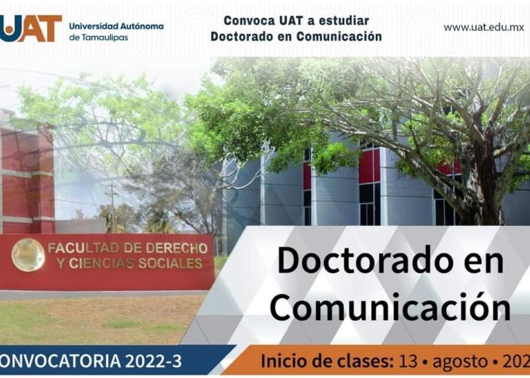 La Facultad de Derecho y Ciencias Sociales (FADYCS) de la Universidad Autónoma de Tamaulipas (UAT) en Tampico convoca a profesionistas con deseos de continuar su preparación académica a participar en la convocatoria 2022 del Doctorado en Comunicación, cuya fecha límite de recepción de documentos es el 31 de mayo.
